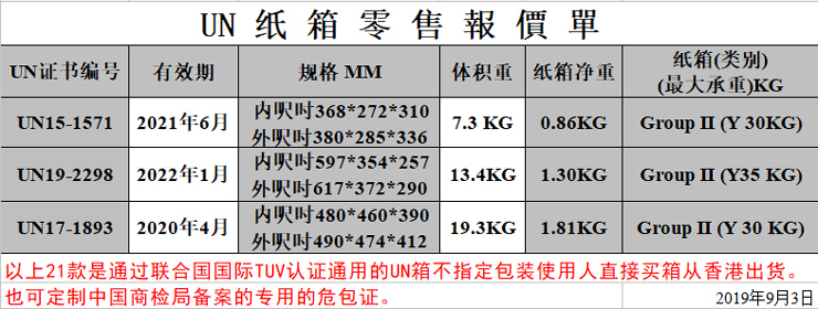 香港空运危包纸箱能够让整个运输变得更加的方便,由于危害物品跟其它的普通物品还是有着非常大的不同,一不小心的话让里面的物体流出来都会造成人员伤害,或者说对周围的环境产生一定的污染,而在运输过程中选择了危险品包装的话,就能够很大程度上保证了它的安全性。